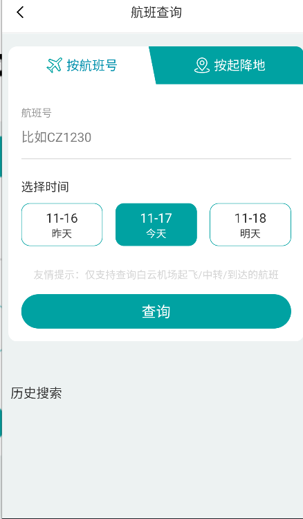 2、选择“按航班号查询”这一选项,进入航班号查询信息填写界面。