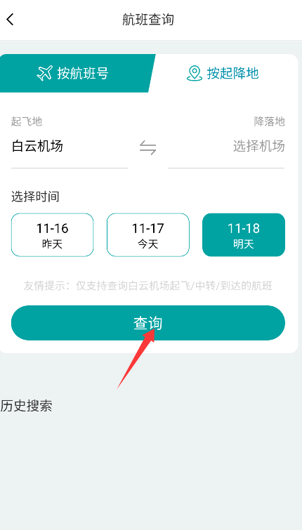 3、完成所有条件设定后,点击页面下方的“查询”按钮即可获取相关航班动态信息。