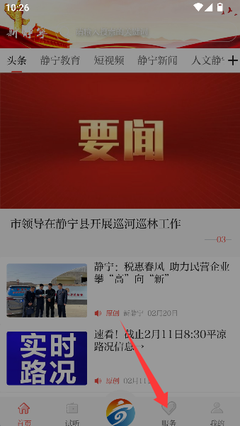 1、在首页找到并点击那个包罗万象的“服务”大门,仿佛打开了静宁本地的便民百宝箱。