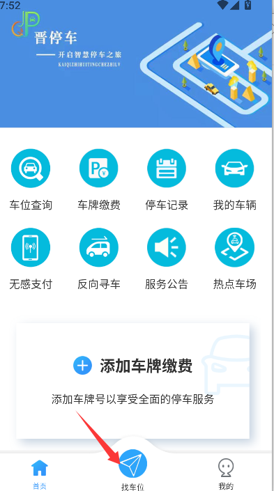 1、找到并点击“找车位”功能入口,进入车位搜索页面。