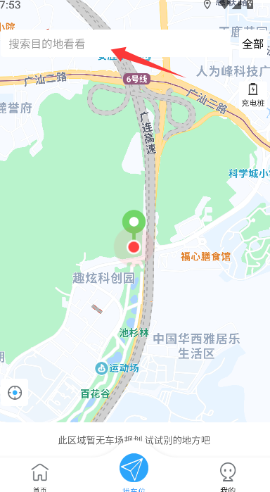 2、点击搜索框,输入目的地名称或地址以查找周边停车场。