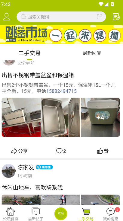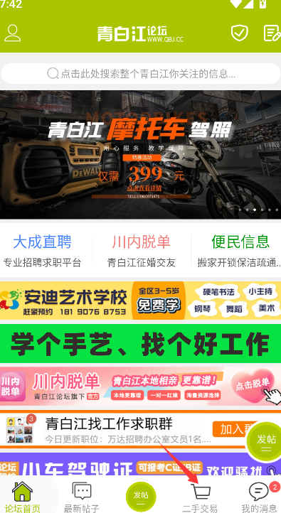 1、找到并点击“二手交易”栏目入口,进入闲置物品列表页面。