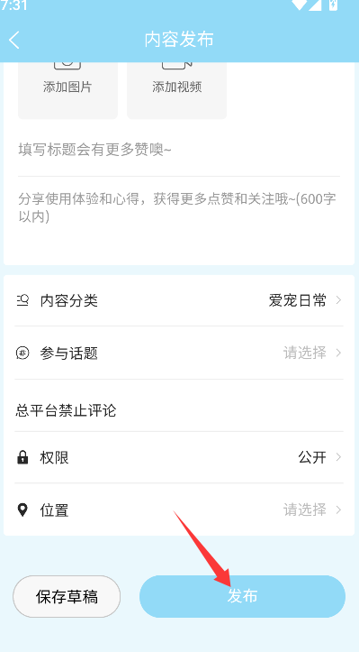 3、点击页面下方的“发布”按钮,即可将编辑好的动态成功发布到社区中。