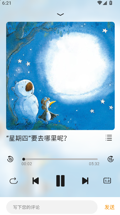 3、点击播放按钮,即可开始收听《星期四要去哪里》的音频内容。