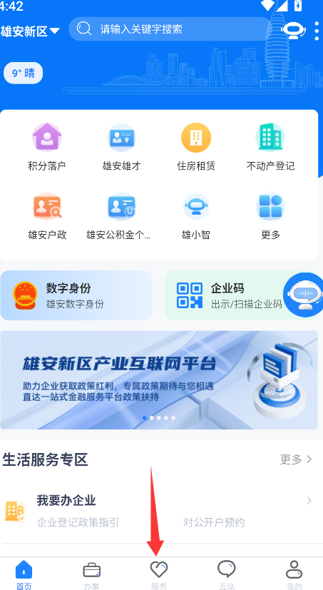 1、找到并点击“服务”功能入口,进入综合服务页面。