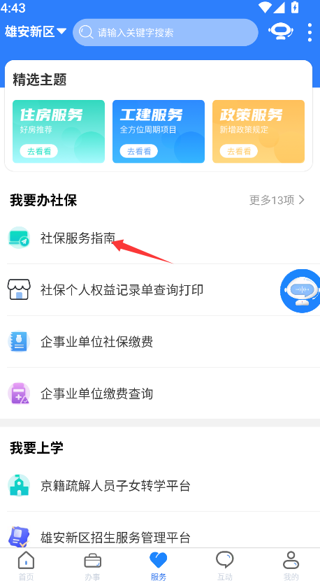 2、选择“社保服务指南”选项,以浏览相关服务内容。