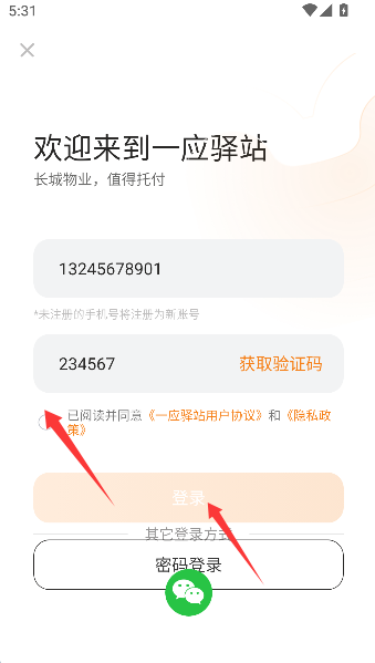 3、最后,请高抬贵手在隐私政策前打上小勾勾,再用力点击登录按钮,恭喜您正式成为社区采购大家庭的一员。