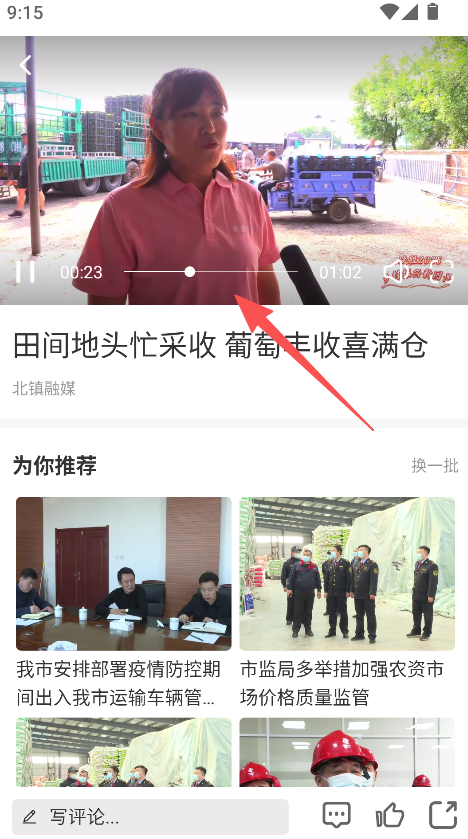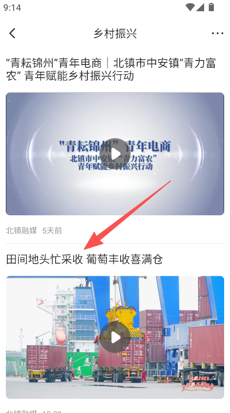 2、选择新闻(如田间地头忙采收 葡萄丰收喜满仓),进入新闻详情页。
