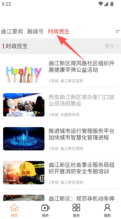 3、提供板块分类功能,支持时政民生、曲江要闻等板块筛选,资讯获取针对性强,提升信息感知度。