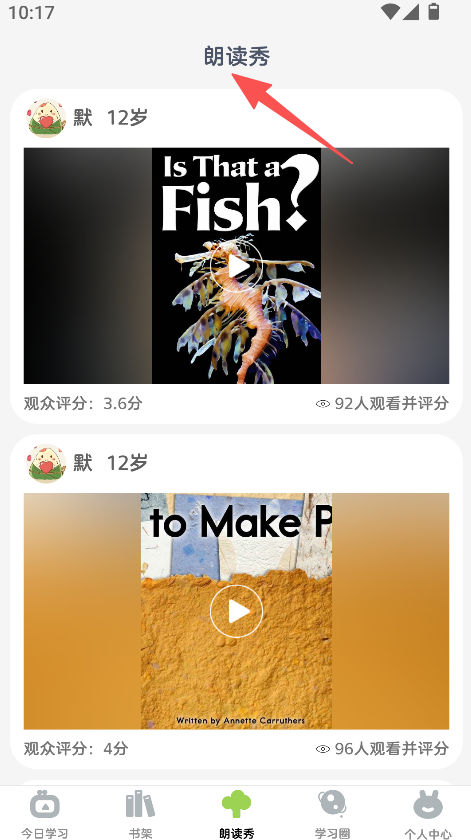 3、进入朗读秀,观看他人朗读视频,提升朗读能力。