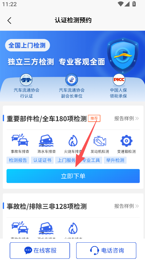 2、查看服务介绍,了解检测内容,点击立即下单。