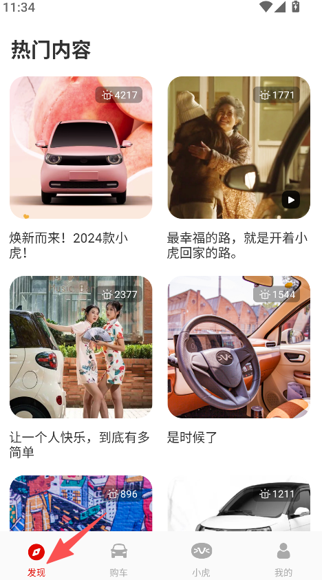 3、板块清晰,发现、小虎、购车分类明确,用户查找品牌资讯高效,信息获取便捷。