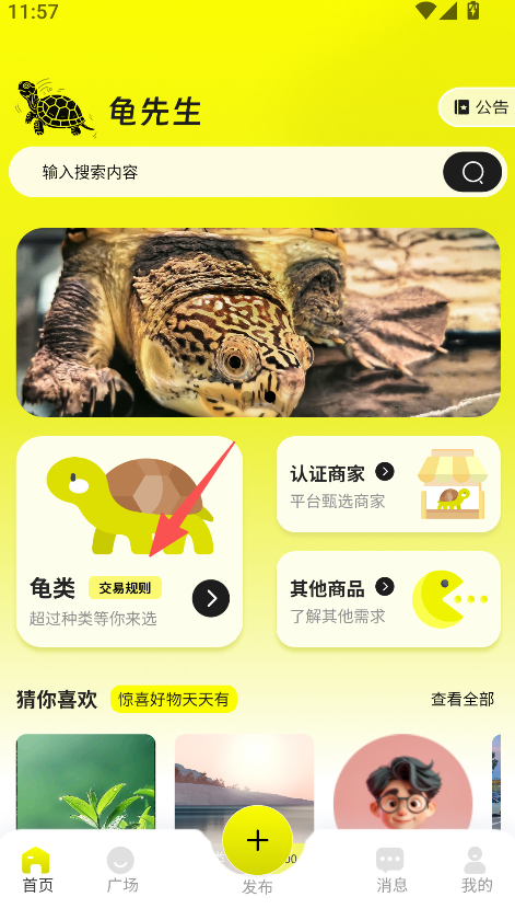 2、板块划分清晰,有龟类、认证商家、其他商品等板块,满足龟类爱好者多样需求。