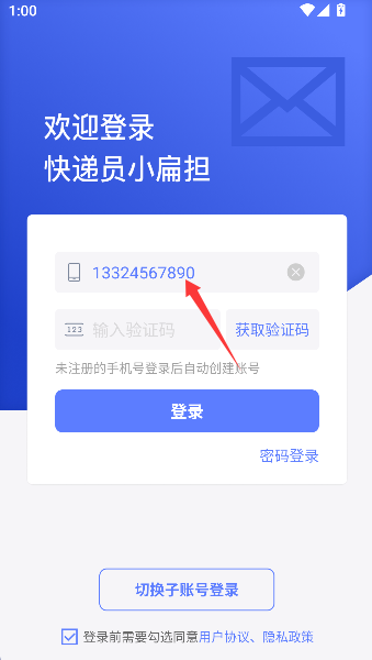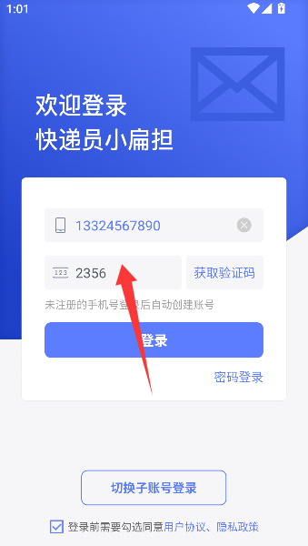 1、在方框里按下你的手机号码,就像为今天的派送征程登记专属工位,准备出发。