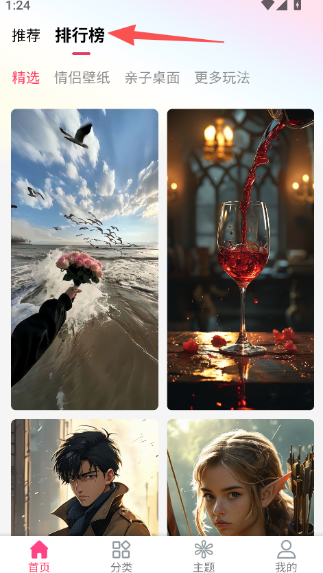 1、打开首页,点击排行榜,选择喜欢的壁纸分类。