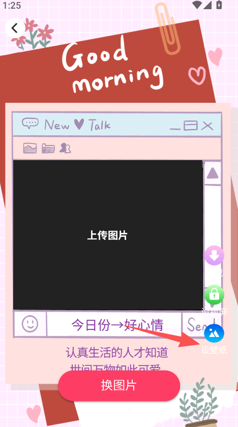 2、支持壁纸设置功能,在壁纸详情页可直接设壁纸,还可上传图片,实现个性化壁纸设置,功能实用。