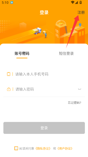 1、勇敢地点击那个醒目的“注册”按钮,这将是您开启乡村物流镖师职业之旅的庄严第一步。