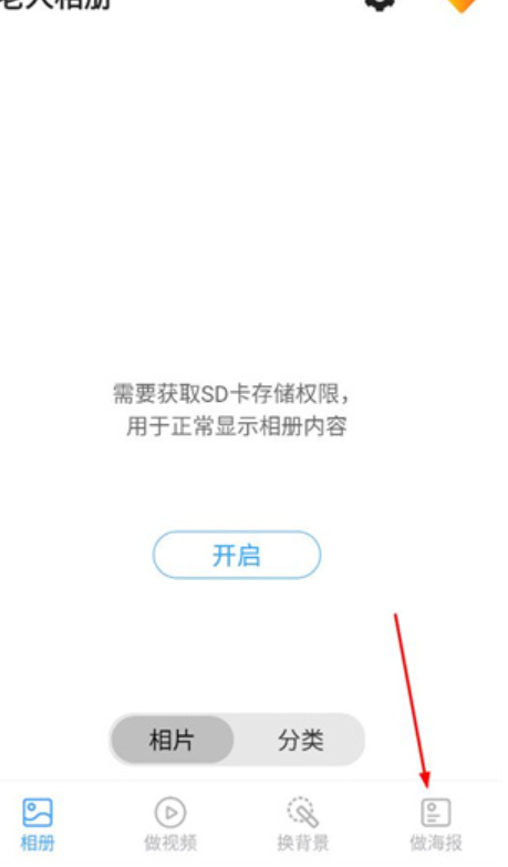 1、在主界面右下角找到并点击“做海报”按钮,进入海报模板选择界面。