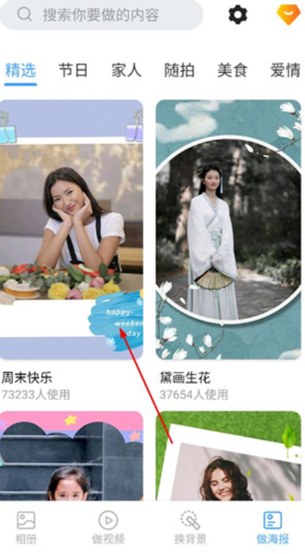 2、选择特定主题的海报模板,添加照片与简短文字,即可生成个性化电子或打印相册。
