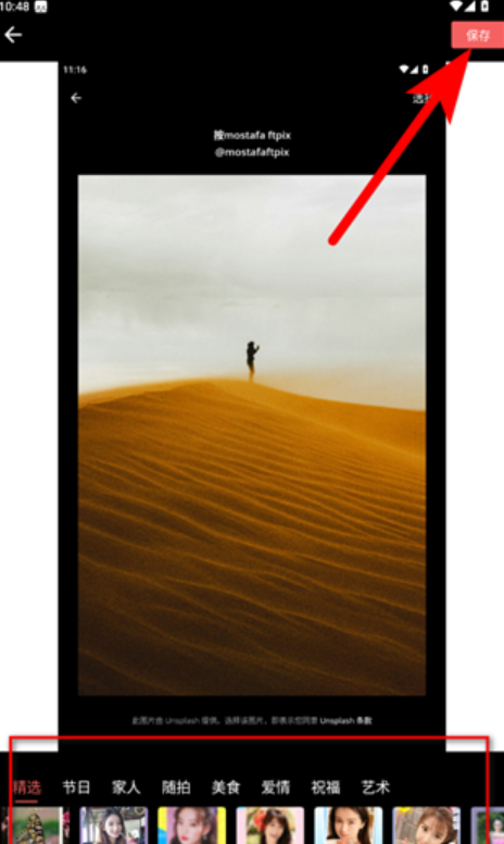 3、在编辑页面完成照片添加等操作后,点击页面右上角的“保存”按钮,即可将制作完成的海报存储至手机相册。