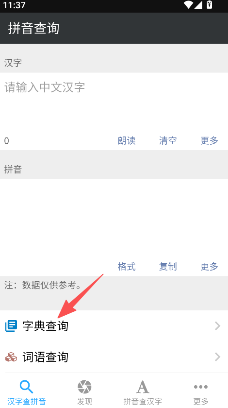 3、还可切换拼音查询、词语查询功能,满足不同查询需求。
