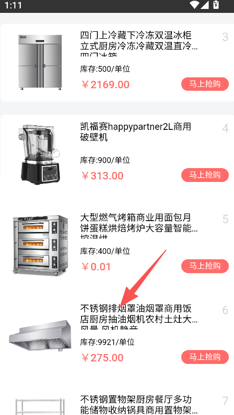 2、选择心仪设备如不锈钢排烟罩,进入详情页查看库存价格。