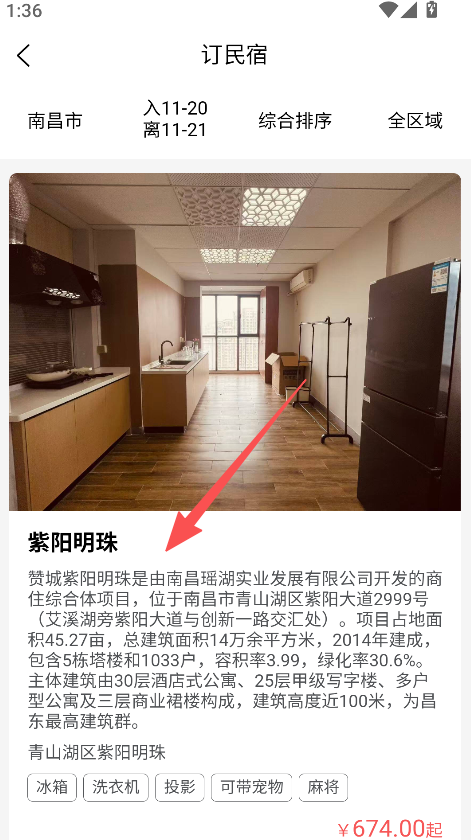 2、选择心仪房源如紫阳明珠,进入查看详情。