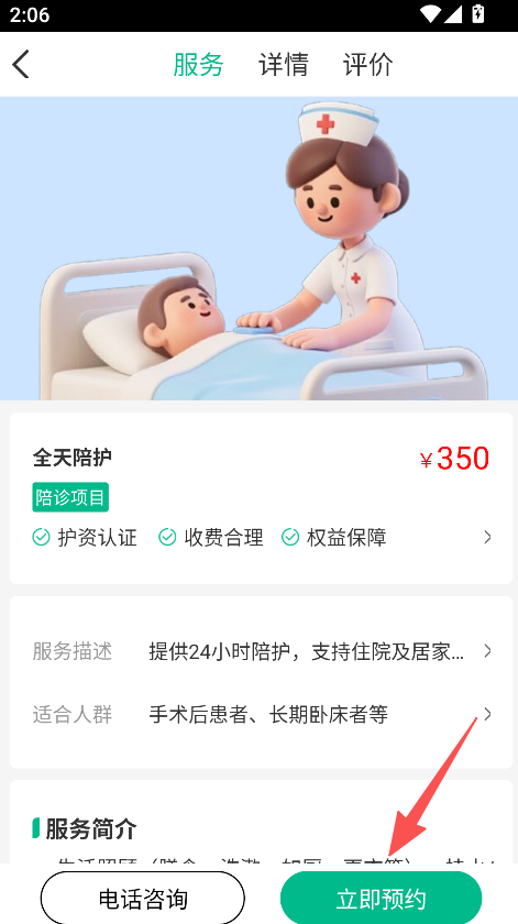2、进入服务详情页,查看服务描述、适合人群等信息。