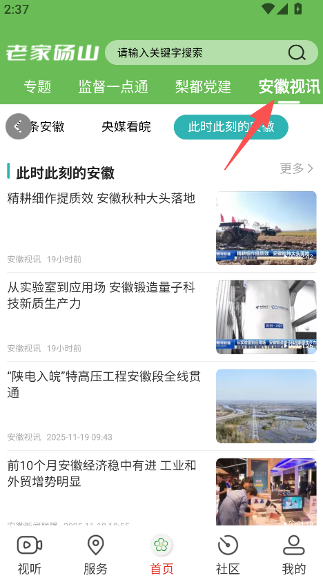 2、视频观看功能,提供安徽本地新闻、文体活动等视频内容,助力用户通过视听形式获取资讯,丰富信息获取渠道。