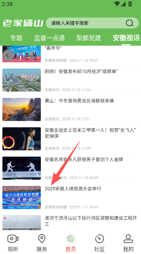 2、选择感兴趣的资讯标题,如安徽入境旅游大会等,点击进入查看视频或图文内容。