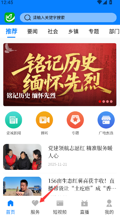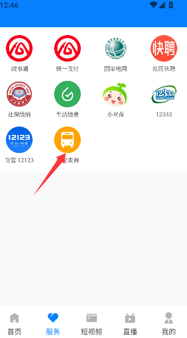 1、在应用主页界面,找到并点击“服务”功能入口,进入便民服务菜单。