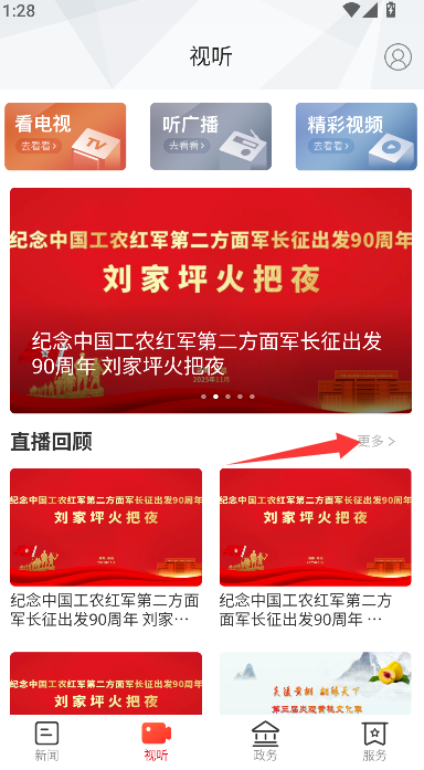 2、在屏幕上的“直播回顾”功能区域中,点击右侧的“更多”按钮,系统会切换到直播回顾列表页面。