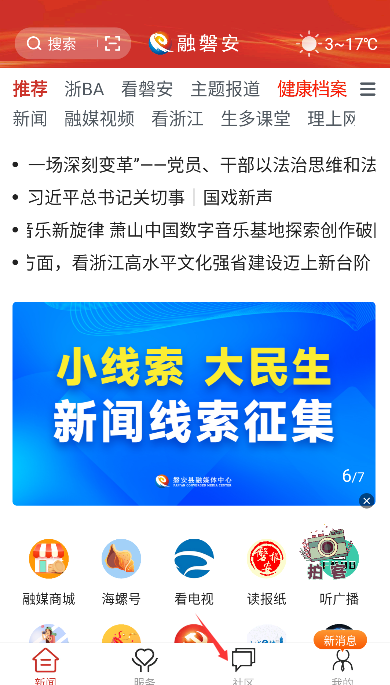 1、找到并点击底部导航栏的“社区”选项,页面将跳转至社区功能主页面。