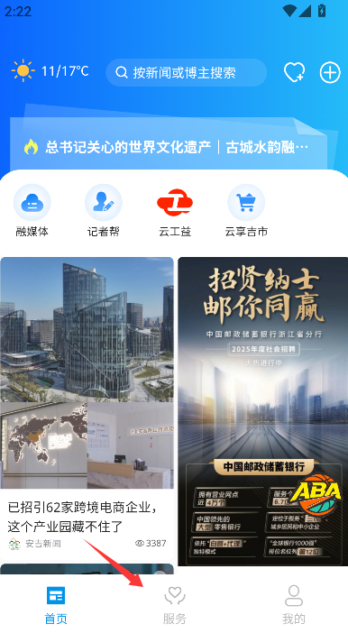 1、找到并点击导航栏或功能区的“服务”选项,页面将自动跳转至服务主页面。
