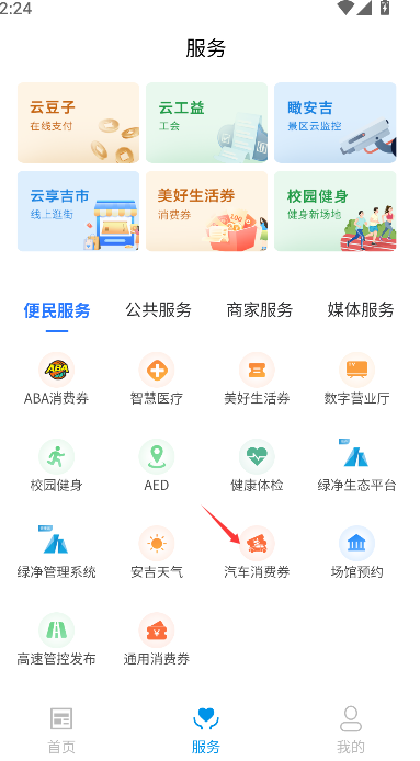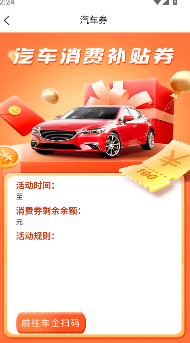 2、找到并点击“汽车消费券”具体功能入口,系统会加载相关页面。
