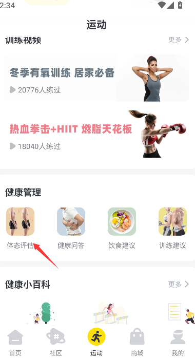 2、浏览功能列表,选择并点击“体态评估”服务入口,进入评估准备界面。