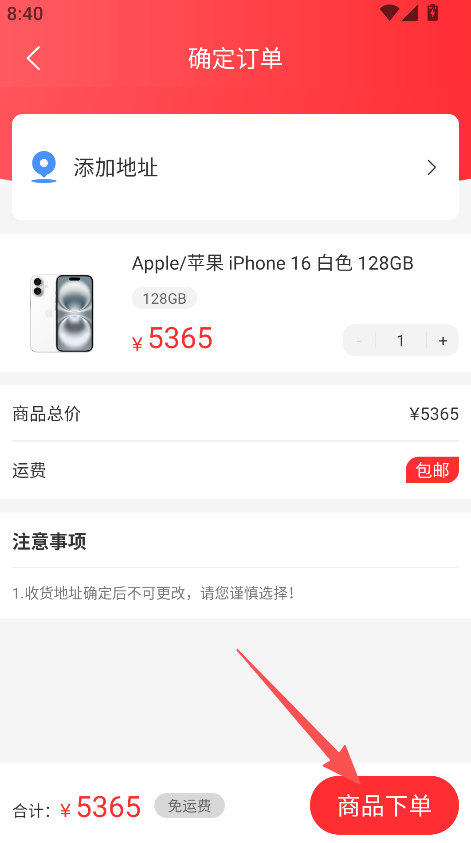 3、下单体验透明,收货地址、商品总价、运费等信息清晰,还提示注意事项,让用户下单更安心。