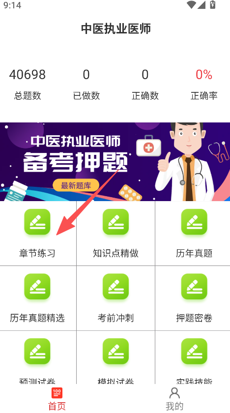 1、聚焦中医执业医师考试,题库按章节、知识点、真题等模块划分,结构清晰,考生可按需选择练习,备考针对性强。