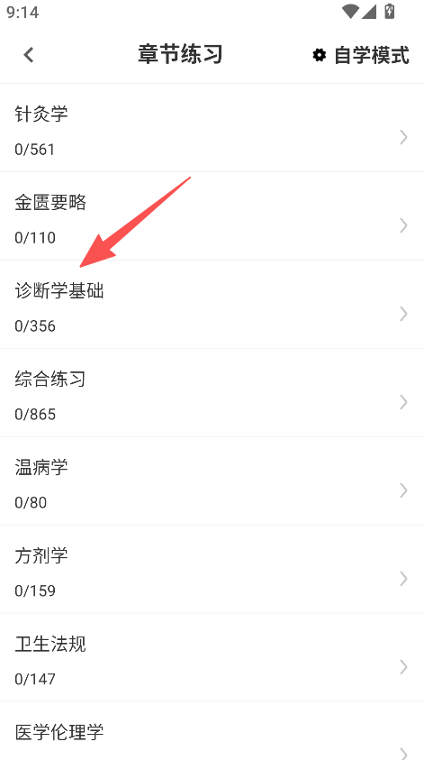 2、选择诊断学基础等科目,进入具体章节练习。
