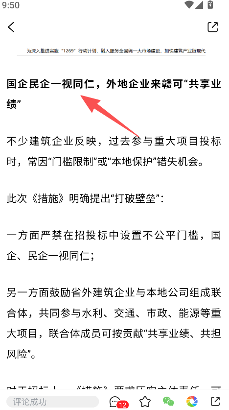 2、新闻详情功能,点击资讯标题可查看政策解读、事件详情,如江西建筑业20条的具体内容,深入了解资讯。