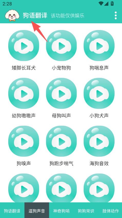 3、提供逗狗音效播放功能,在逗狗声音板块选择各类犬声选项,点击播放音效,增强与宠物的互动乐趣。