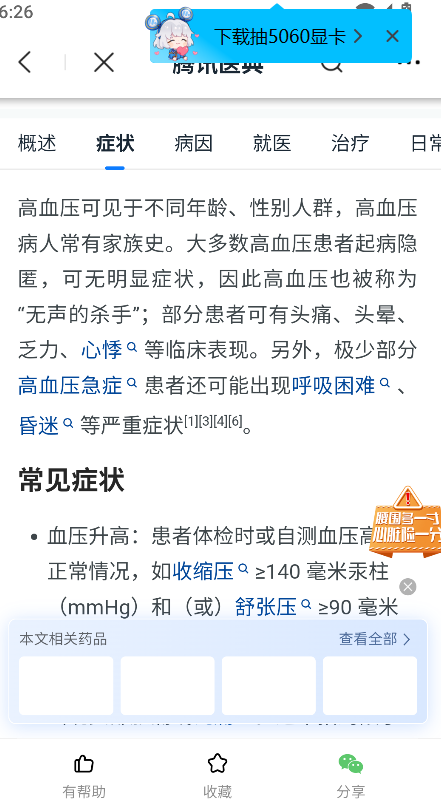 3、定位并点击“症状”分类板块,即可查看关于高血压症状的详细描述、常见表现及相关临床解读信息。