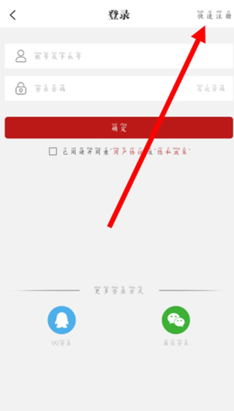 3、找到并点击"快速注册"功能入口,即可进入新账户注册信息填写页面。