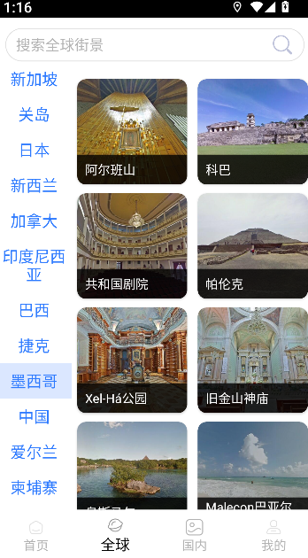 3、若想查看国外景点,在地区分类中找到 “墨西哥” 并选择,就能浏览当地知名景点相关详情。