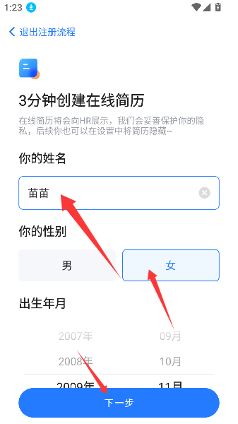 1、首先郑重地输入你的大名,再勾选性别,这个步骤就像在派对签到簿上留下第一个幽默的自我介绍,轻松又正式。