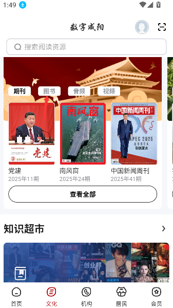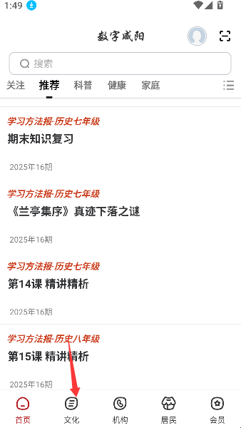 1、在软件首页底部轻轻戳一下“文化”按钮,仿佛推开一扇通往咸阳知识宝库的大门,惊喜即将涌现。