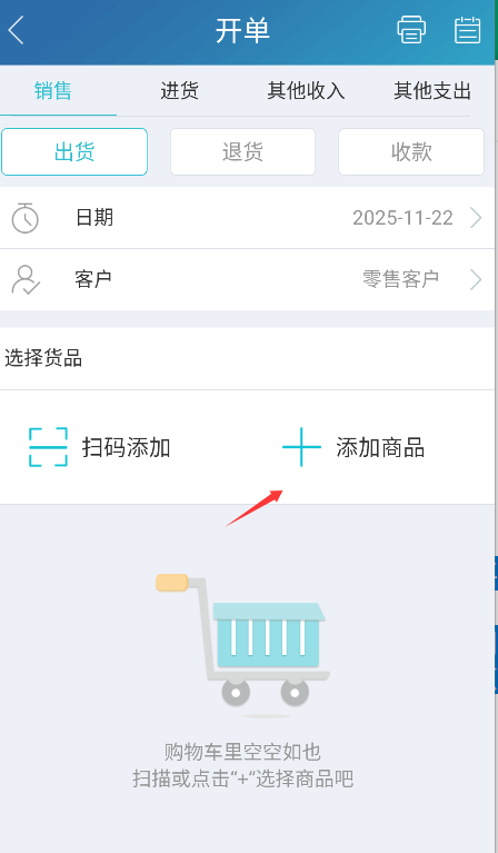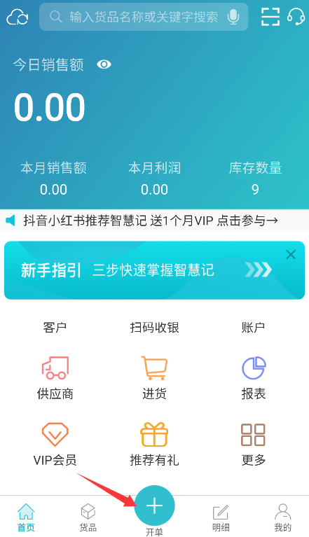 1、找到并点击核心功能入口“开单”按钮,进入业务处理流程。