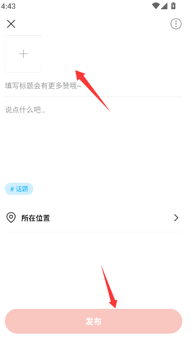2、点击“+”或“发动态”按钮,进入内容编辑与发布界面。