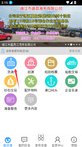 1、打开《船货通》APP,首页那个醒目的“货源”按钮就像航海雷达的开关,轻轻一点就能启动寻货探测。