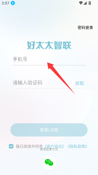 1、在登录页面郑重地输入你的手机号码,这串数字就像启动智能厨房的专属密码,即将开启美味之旅。